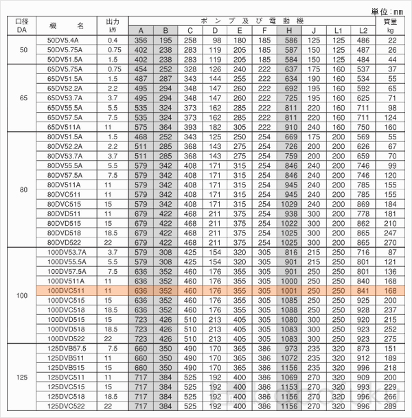 スペック/荏原(エバラ)100DVC511