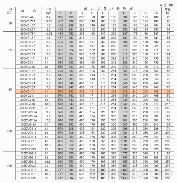 スペック/荏原(エバラ)80DV611A